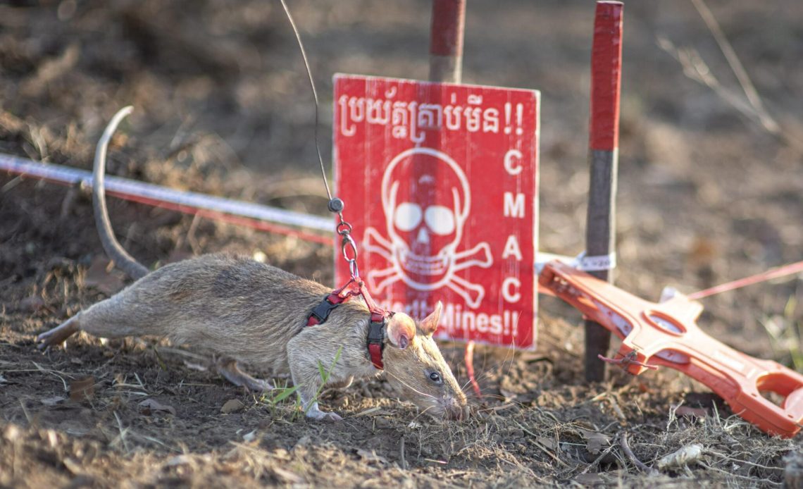 Las ratas son adiestradas para detectar los componentes químicos de los explosivos e ignorar los trozos de metal abandonados para encontrar los artefactos sin explotar mucho más rápido y aunque son roedores grandes su peso no es suficiente para detonar las minas.