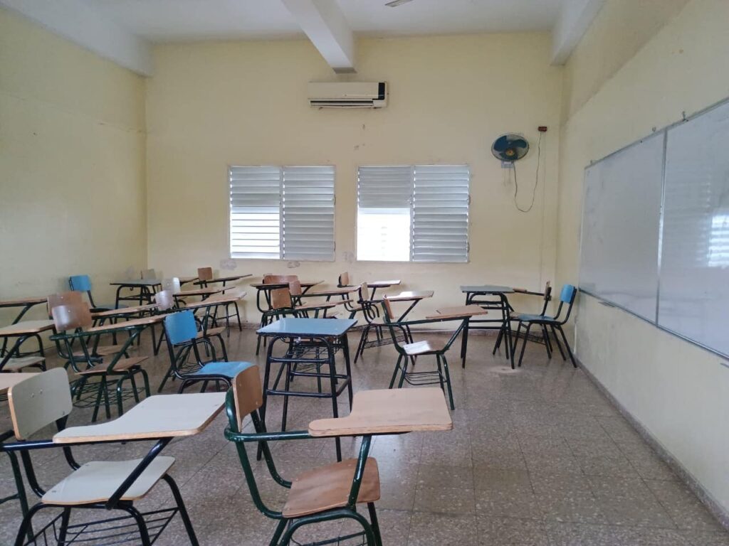 - Pese a la modernidad del centro de Baní, se registran denuncias por la falta de profesores, lo que les obliga a inscribirse en Santo Domingo para poder cursar materias.