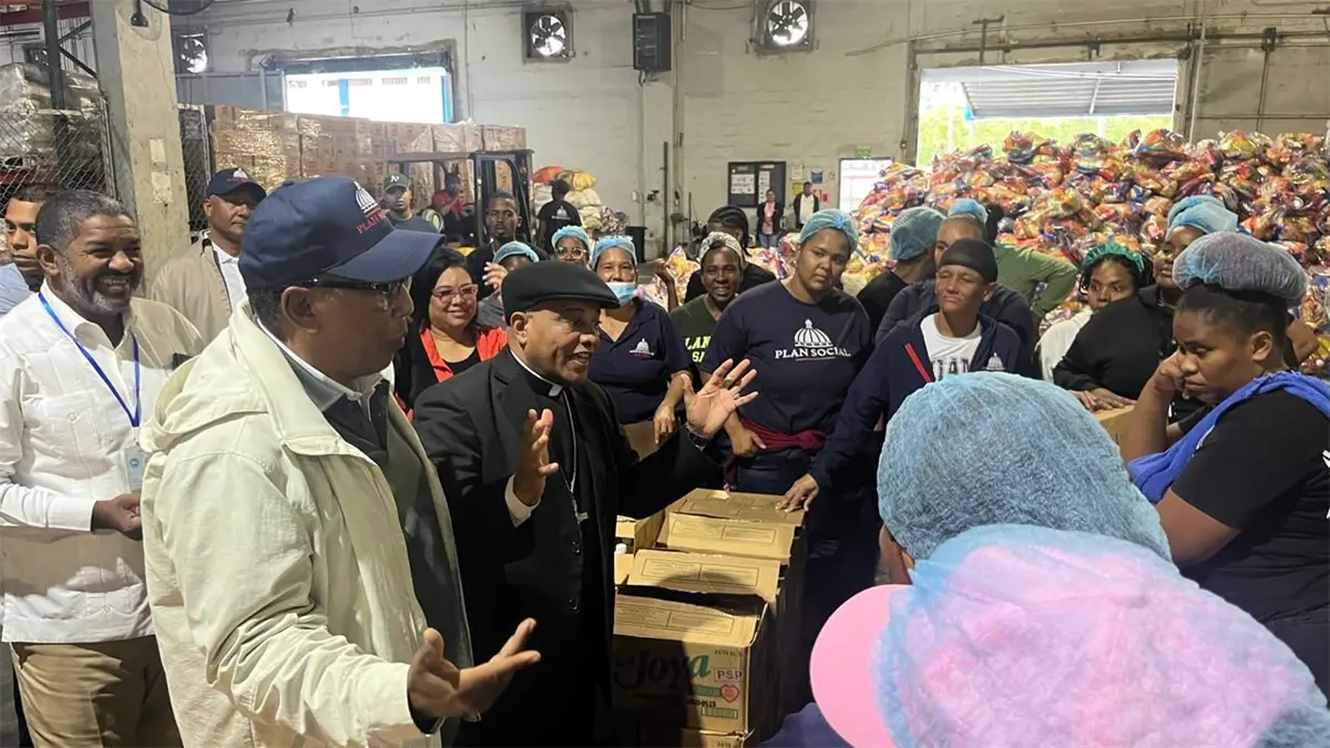 El Monseñor Ruíz de la Rosa, en compañía del doctor. Edgar Feliz, así como otros funcionarios de la entidad social estatal, recorrieron todo el centro de producción, empaque y distribución de alimentos.