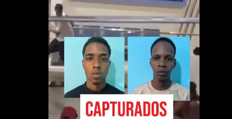 La Policía Nacional informó que capturó a dos hombres señalados como los presuntos responsables de un asalto perpetrado en las afueras de una clínica ubicada en el municipio de Los Alcarrizos, hecho que quedó registrado por las cámaras de seguridad del establecimiento.