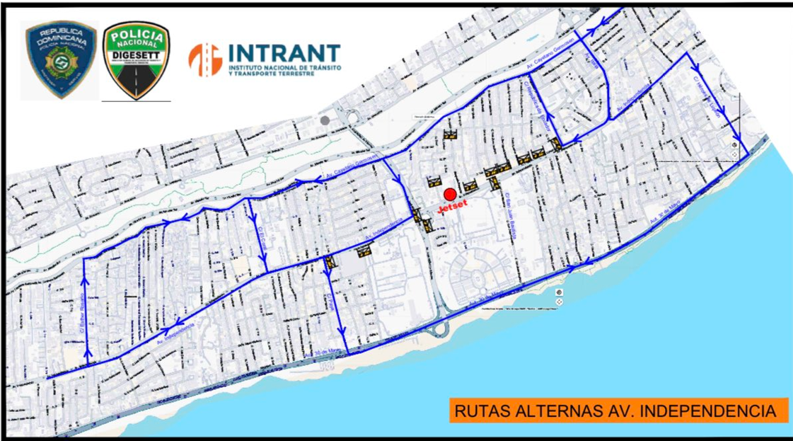 El Instituto Nacional de Tránsito y Transporte Terrestre (INTRANT) ha informado sobre la implementación de rutas alternas debido al colapso de la discoteca Jet Set, ocurrido en la madrugada de este martes en la avenida Independencia, en el Distrito Nacional.
