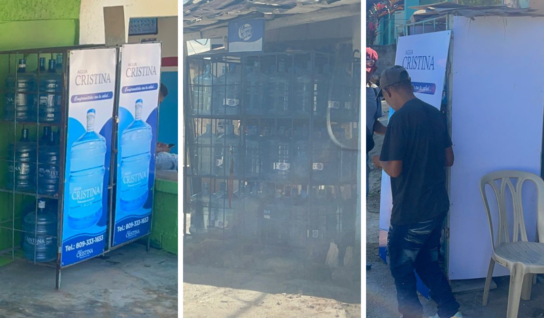 Colmaderos y demás distribuidores de agua potable en diversos sectores del Distrito Nacional, hacen malabares para cubrir los contenedores de botellones de rayos del sol, tras haberse vencido el plazo impuesto por Pro Consumidor.